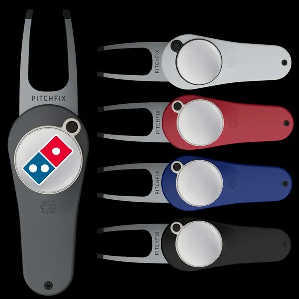 Featuring the iconic switchblade-style design, this PitchFix Original Divot Tool combines functionality with premium craftsmanship. Equipped with a removable magnetic ball marker that can be fully customized with vibrant logos or designs, it's perfect for corporate golf events, client gifts, and high-end branded swag. Built with durable ABS handles for a comfortable grip and dependable performance, this tool is the ultimate accesso