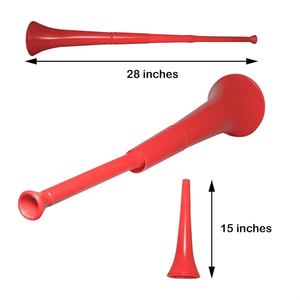 Get ready to make some serious noise with this collapsible vuvuzela horn. Whether you're cheering on your favorite team or bringing some fun to a party, this horn delivers a loud, attention-grabbing sound. It's easy to use, with a design that lets you shorten or extend it for convenience. Perfect for sports fans, pranksters, or anyone looking to add some excitement to a soccer match, football game, graduation, or New Year's Eve celebration. This stadium horn is your go-to noise maker for any big event! This price includes the shipping cost to CA. The prices for 1000pcs or over are based on ocean shipments.
