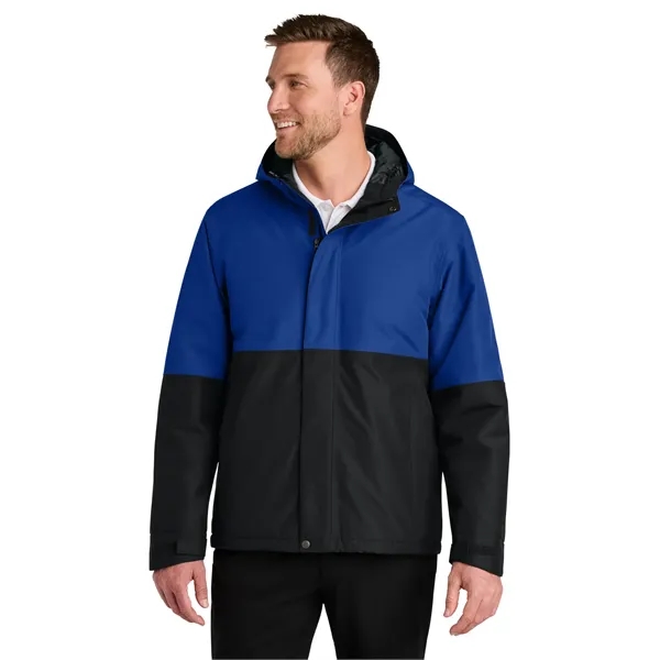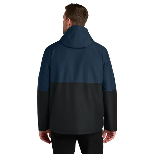Port Authority Insulated Heavy Ripstop Jacket Primed for the slopes or any cold-weather commute, this storm-ready 8K/5K jacket has a compelling colorblock design and features fleece in the upper body for extra warmth. 100% polyester ripstop shell 2.3-ounce, 100% polyester polyfill insulation (upper body) 2.9-ounce, 100% polyester polyfill insulation (hood, lower body and sleeves) Fabric waterproof rating: 8000MM Fabric breathability rating: 5000G/M2 Adjustable hood with locking drawcords Full-length interior storm flap Interior chest pocket under storm flap Full-length exterior storm flap with snap and hook and loop closures Adjustable cuffs with hook and loop closures Zippered hand pockets Adjustable locking drawcord at hem Port Pocket for decoration access Water protection method: Dur...