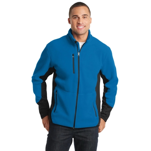 Port Authority R-Tek Pro Fleece Full-Zip Jacket. With R-Tek Pro, we've taken soft, brushed fleece and added stretch side and sleeve panels for easy movement and a sleeker look. Produced using Low Impact Technology (L.I.T. ) which uses less dyestuffs, thermal energy and water for enhanced softness, performance and after-care quality. 7.1-ounce, 100% polyester R-Tek Pro fleece 88/12 poly/spandex side panels Reverse coil zipper with chin guard Zippered chest pocket Front zippered pockets with zipper garages Stretch binding at hem