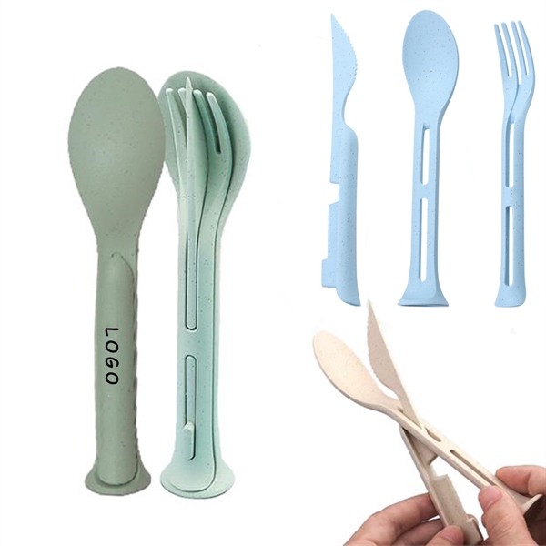 Portable 3 In 1 Biodegradable Wheat Straw Cutlery Set