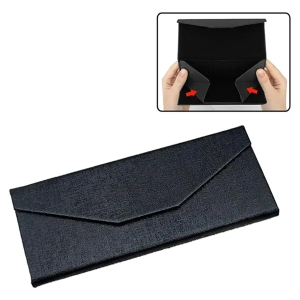 Portable Leather Magnetic Folding Glasses Case. Our collapsible glasses case features a sleek PU leather exterior that's waterproof and tidy, while the soft lining inside provides double-layer protection to keep your glasses safe from scratches and breakage. Its innovative triangular design maximizes storage space, accommodating not just sunglasses and reading glasses but also necklaces, bracelets, lipstick, pencils, and other accessories. With no buttons or clasps, it uses convenient magic magnets for easy access. When not in use, this glasses case collapses into a slim profile, making it perfect for fitting into your carry-on or handbag. This price includes the shipping cost to CA. The prices for 3000pcs or over are based on ocean shipments.