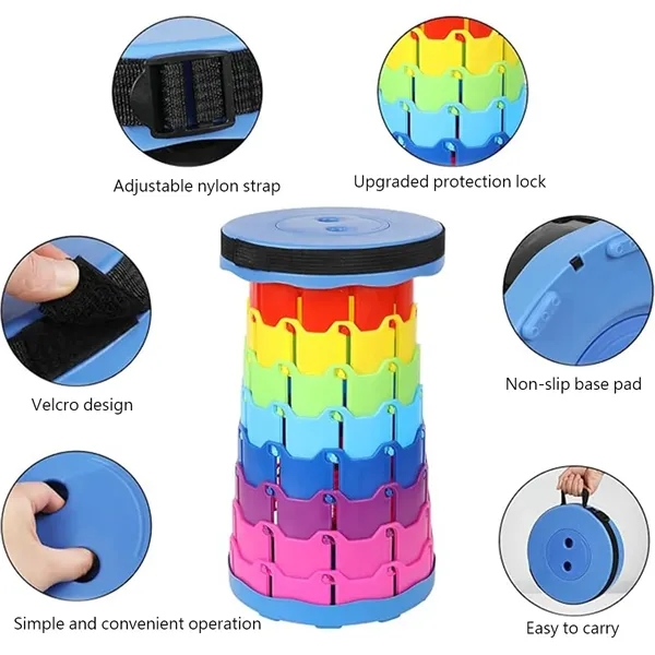 Made of high quality plastic material, the retractable folding stool can load up to 600lbs, it's firmly and durable. This portable seat can be adjusted to the height from 2.36 to 17.72 inches, and it is only 2.12 pounds. The adjustable strap makes the folding stool easy to carry by the way you like. There is a closing and opening button on the bottom, when you sitting or storing, please make sure the closing button is locked, it can prevents automatic opening when you sitting and increases security. We can print your company's logo. The prices for 210pcs or over are based on ocean shipments.