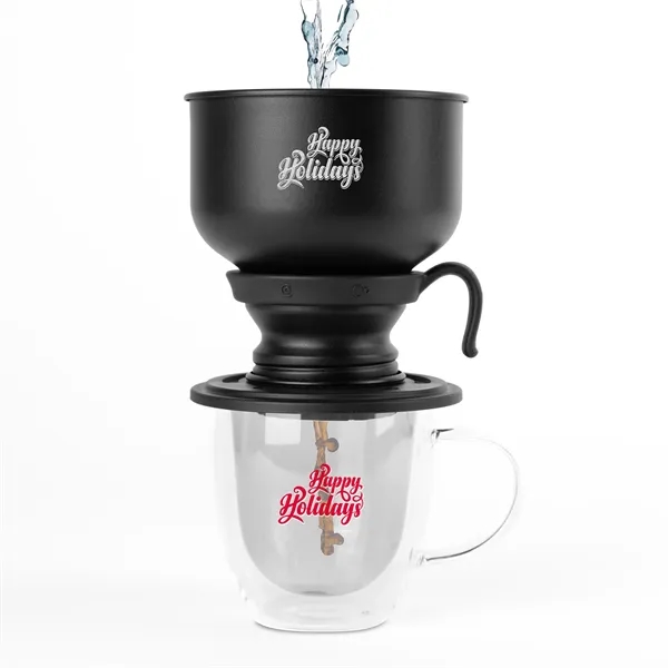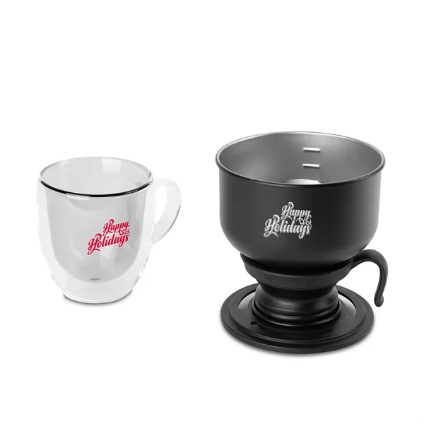 Coffee lovers, this set is for you! Brew your perfect cup of coffee each day with the Pourfect Pair Coffee Set, which includes the Pour Over Drip Coffee Maker and the 8.5oz. Double Wall Glass Mug. The coffee maker’s stainless steel design ensures durability, while its simple disassembly makes cleaning a breeze. The mug, crafted from tough double wall borosilicate glass, keeps your drink at the perfect temperature. All pieces are carefully packaged in protective kraft crinkle paper and presented in an eco-friendly corrugated cardboard box - biodegradable, compostable, and recyclable.