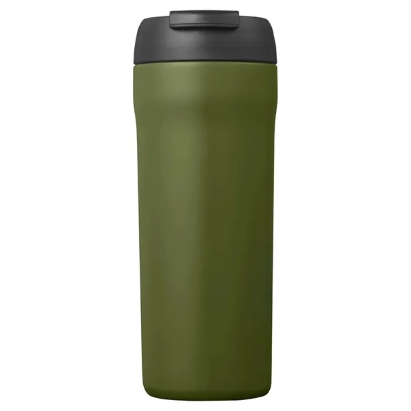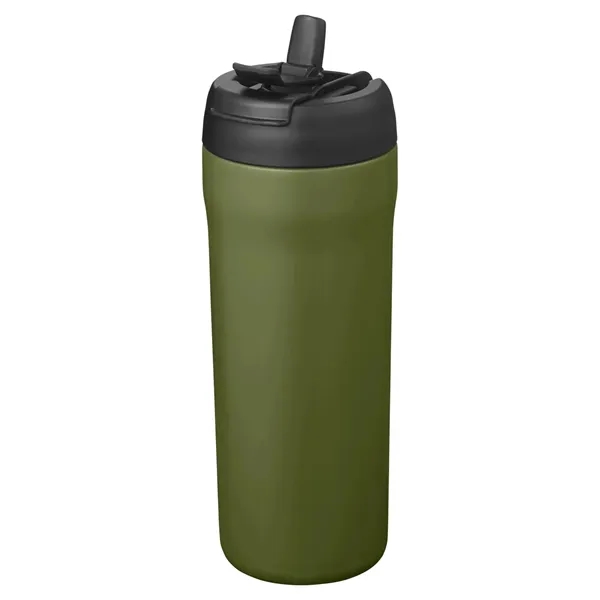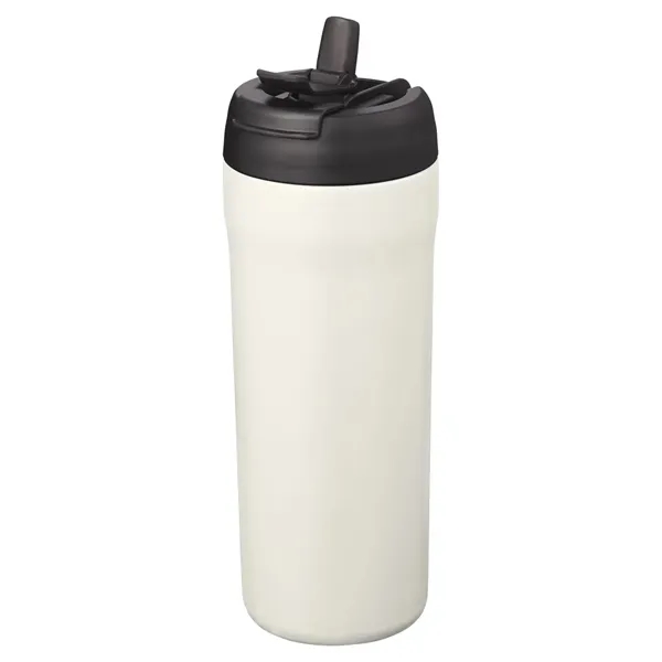 Stainless steel;Double-wall, vacuum insulated; Intended for hot or cold drinks; 2in1 lid allows you to sip from a straw or from the flip lid; 8.8″h x 2.9″ dia.;