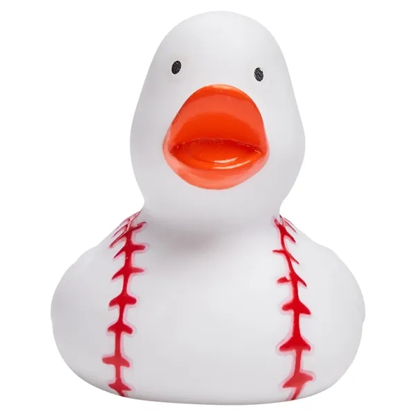 Rubber;Unique promotional item for sports fans of all ages; Rubber duck with body designed to look like a baseball with traditional red stitching; Ducks are not weighted for racing or balanced floating; Product Size: 3″ w x 4″ d x 3.5″ h;