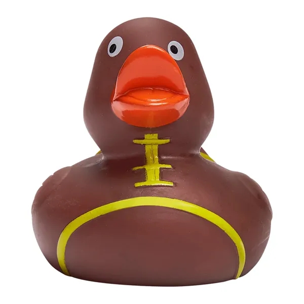 Rubber;Unique promotional item for sports fans of all ages; Rubber duck with body designed to look like a football with traditional stitching ; Ducks are not weighted for racing or balanced floating; Product Size: 3" w x 4" d x 3.5" h;