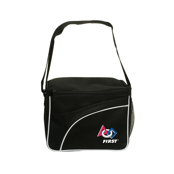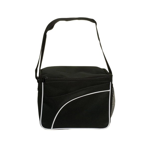 Made of 600D Polyester with contrasting white piping, PEVA lining and foam insulation ;Zippered main compartment and front pocket with hook and loop fastener closure; Adjustable shoulder strap and mesh side pocket; Large enough to hold 12 standard size soda cans; Recommended weight tolerance: 17.5 lbs; Product Size: 12" w x 9" h x 7.5" d;
