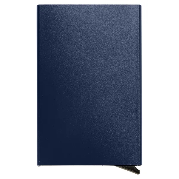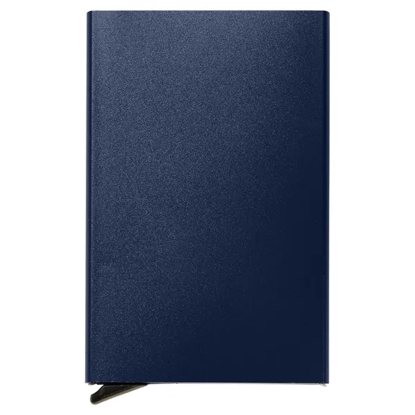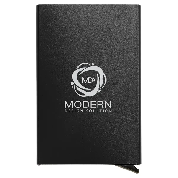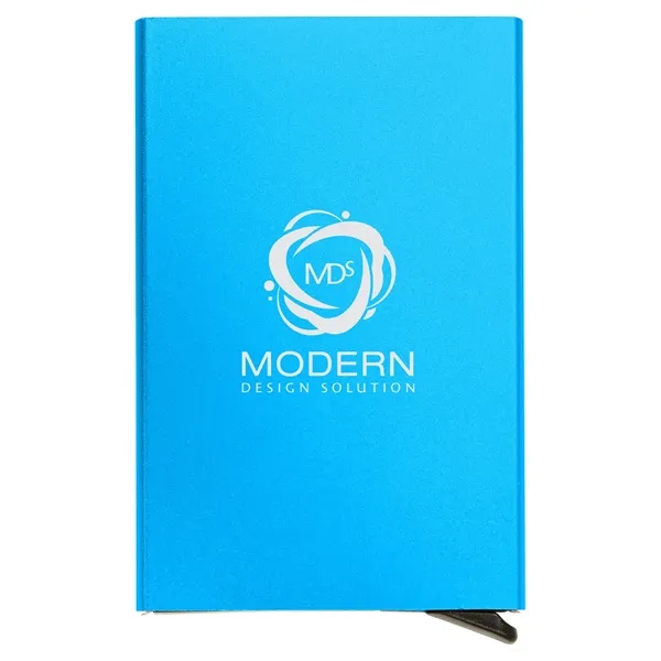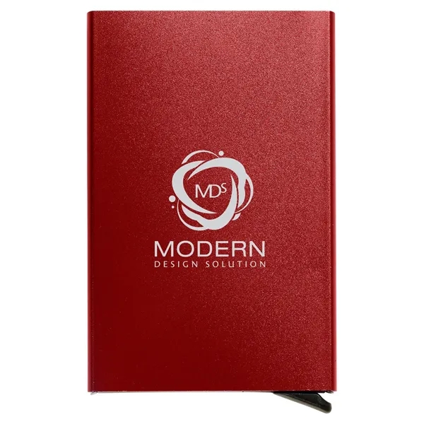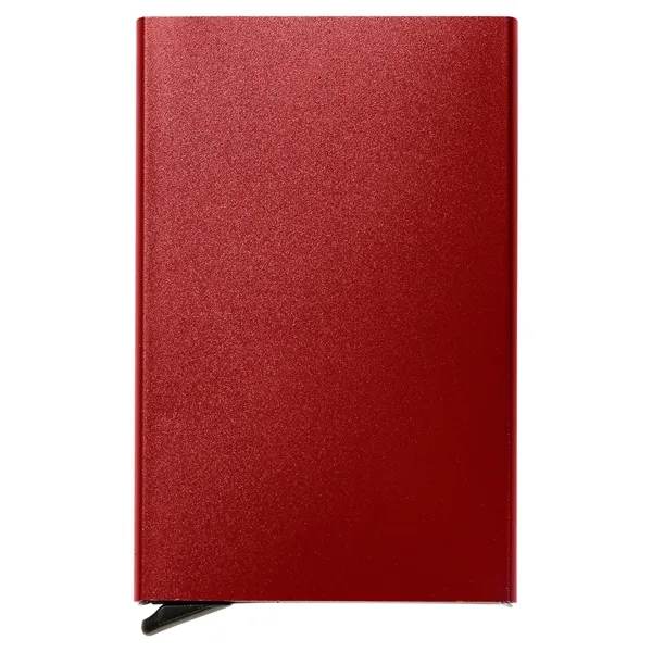 aluminum;Keep your cards safe with not only the hard outer case but also with RFID protection; With just a push of a button, your cards cleverly pop out, ready for immediate use; Product Size: 2.5" w x 4" l x 0.4" d;