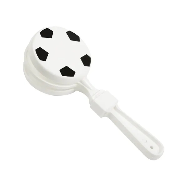 Make some noise at sales seminars, company parties, outings and sporting events! Soccer ball-shaped plastic clappers featuring sport-themed stock art. Shake to celebrate. WARNING: CHOKING HAZARD - small parts. Not intended for children under the age of 3.