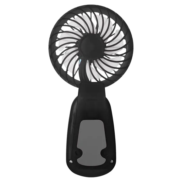 Clip-on hand fan made of ABS Plastic. This fan delivers a refreshing breeze with its adjustable tilting head and three powerful speed settings (slow/medium/fast). Comes with three shrink-wrapped AAA batteries; remove wrap before first use. Battery life of approx. 45 min – 2 hours depending on speed. Clip on back for attaching to desk, tent pole, bag strap or just about anything convenient.