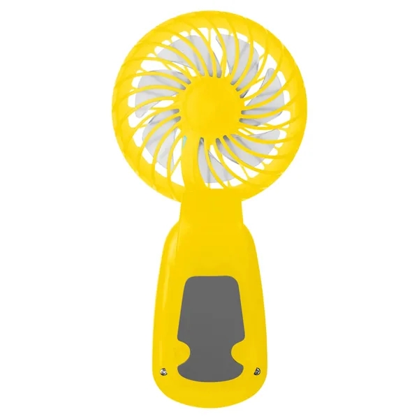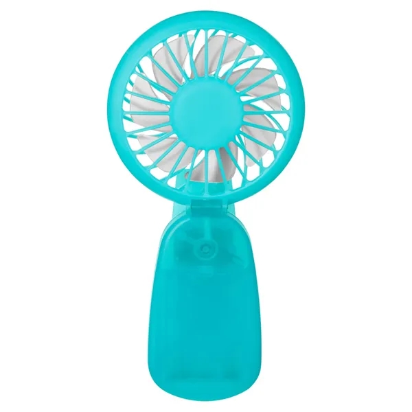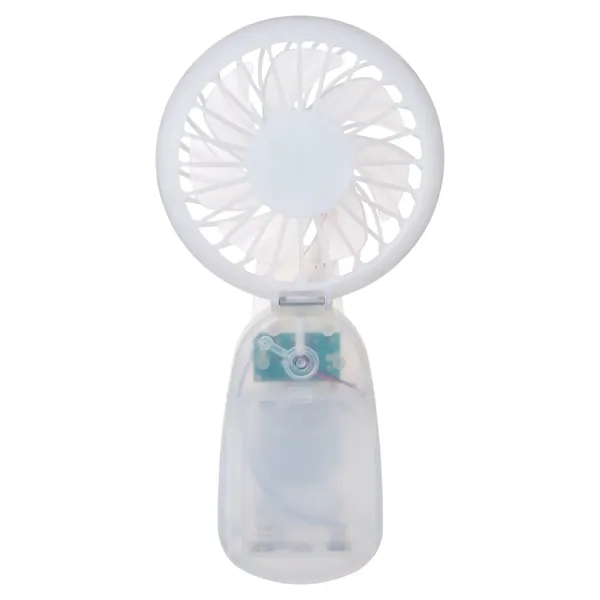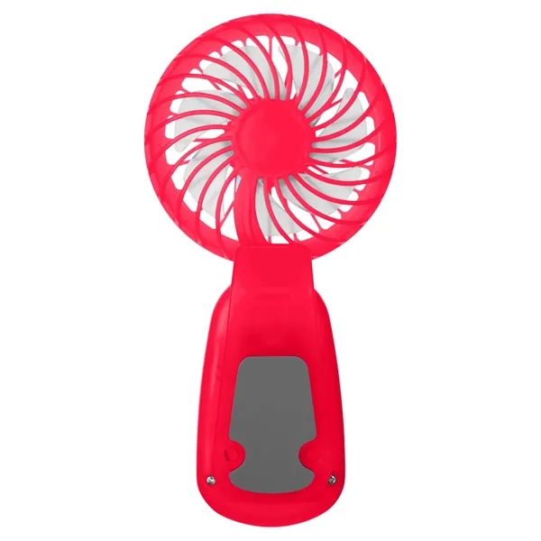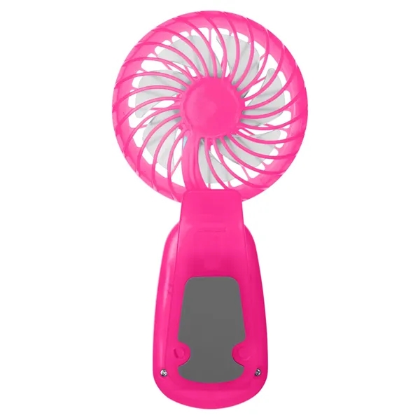 Clip-on hand fan made of ABS Plastic. This fan delivers a refreshing breeze with its adjustable tilting head and three powerful speed settings (slow/medium/fast). Comes with three shrink-wrapped AAA batteries; remove wrap before first use. Battery life of approx. 45 min - 2 hours depending on speed. Clip on back for attaching to desk, tent pole, bag strap or just about anything convenient.