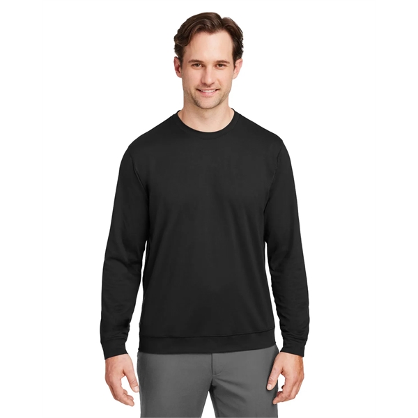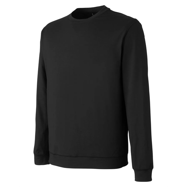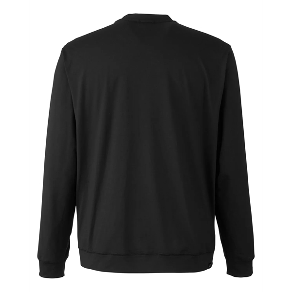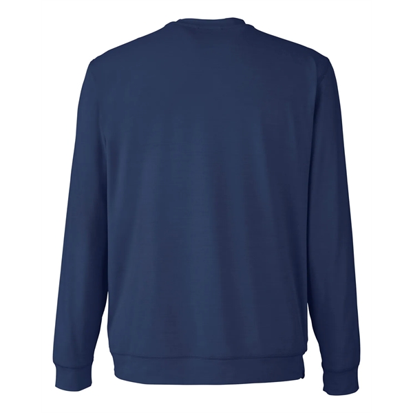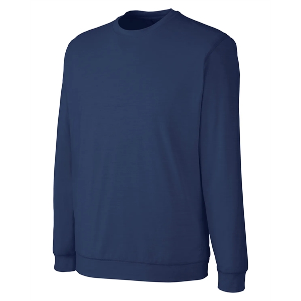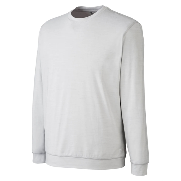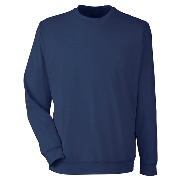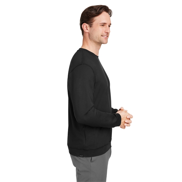 The Puma Golf Men's Cloudspun Crew is a crewneck sweatshirt made with recycled polyester and elastane for a comfortable, stretchy fit. It features moisture-wicking technology to keep you dry, and UPF 50+ UV resistance to protect you from the sun. The four-way stretch allows for a full range of motion during your swing, and the zippered stash pocket on the left hem provides a convenient spot for valuables.