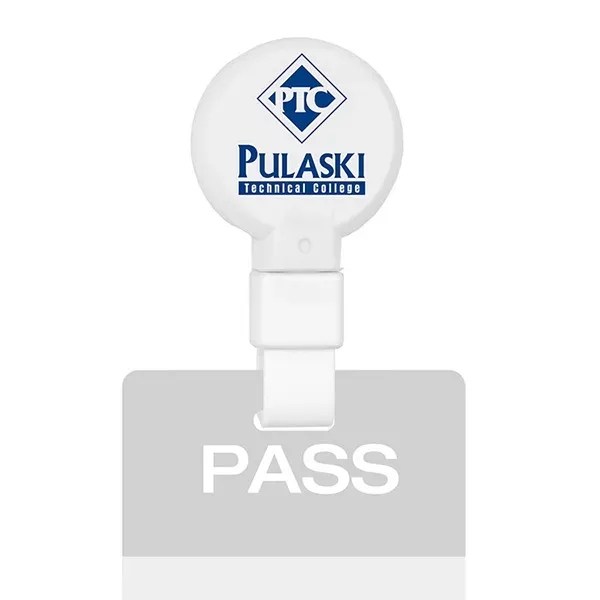 Carry a badge, pit passes, credentials and more for frequent inspections while you’re wearing these retractable badge reels. Made of recycled ABS and PP plastics, these 1″ x 1/4″ round reels have a rotating metal alligator clip to connect to your shirt pocket or belt loop, a 30″ retractable cord reel and a strap connector to attach to a notched badge or ID card. Available in assorted colors. Add your organizational or company logo or message in a full color imprint to customize.