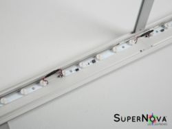 The innovative SuperNova™ LED Inline lightboxes combine exceptionally bright LED lights, modular engineered, an aluminum frame, and silicone edge fabric graphics into a brilliant eye-catching display. The SuperNova LED lights are attached to the frame which makes assembly easy and packaging a snap. 10 ft. and 20 ft. versions are available, in both one-sided and two-sided lightboxes. All have integrated cord management. You won’t believe your eyes the first time you flip the switch and see how stunning a backlit graphic can be.