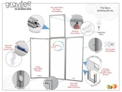 It’s as if we read your mind. You wanted a distinctive custom design, easy to assemble (without tools), lightweight construction, and modular reconfigurability. Welcome to Gravitee! The Gravitee One-Step System features single/double-sided panels that connect without tools or loose parts, SEG or fabric graphics, fully assembled flat or curved panels, and a wide range of accessories. The GK-1007 even comes with a full-size door and a closet. The entire display packs in a fabric-lined, fully jigged custom crate. Each component is numbered for effortless assembly.