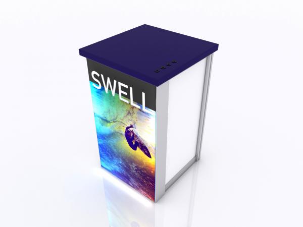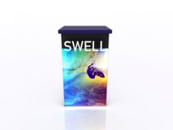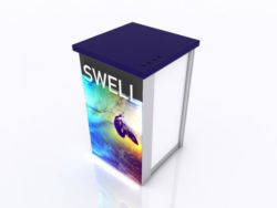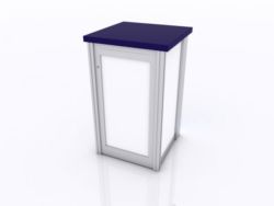 When choosing the right counter or pedestal for your display, consider how you will use it on the show floor. Do you need locking storage? Will the counter or pedestal hold a lead retrieval machine, laptop, or other electrical device? If so, you will need wire management. That may be as simple as ordering a grommet for the counter. If you are planning to use a tablet computer, consider the tablet insert option for the counter top. This option is practical, attractive, and secure for many tablets, such as an iPad.