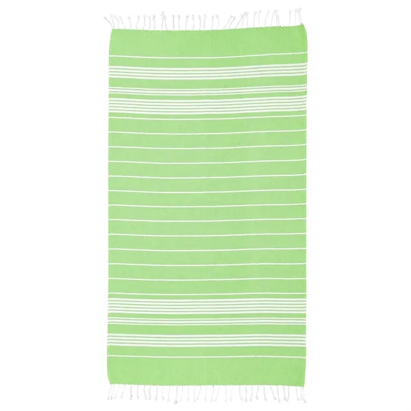 Stretch out in comfort and style with this generously sized 40" x 73" beach blanket, made from 100% recycled cotton. Featuring a classic striped pattern and finished with elegant tassel fringe, it's the perfect companion for sunny beach days, picnics in the park, or laid-back lounging. Soft, sustainable, and surface washable, this blanket brings a fresh look to your outdoor essentials.