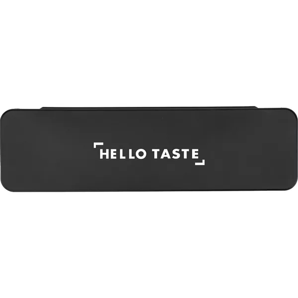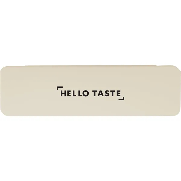 Recycled reusable utensil set is designed for anyone on the go. Whether traveling, camping, dorm room living or heading to your favorite restaurant – this set is this a great utensil solution. The 5-piece set includes a portable case, fork, knife, spoon and a silicone straw. This utensil set includes all the equipment you will need — simply use it, clean it, and store it away for the next adventure. Handwash only.