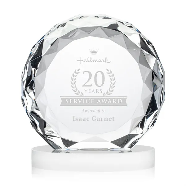 The Seville on Alberton Base combines the elegance of the gem-cut Seville Award with the bold presence of a solid crystal base. Its oval-shaped base supports the faceted round award with vibrant reflections that enhance its brilliance. Perfect for milestones, achievements, or recognition, this piece delivers a striking balance of sophistication and impact.