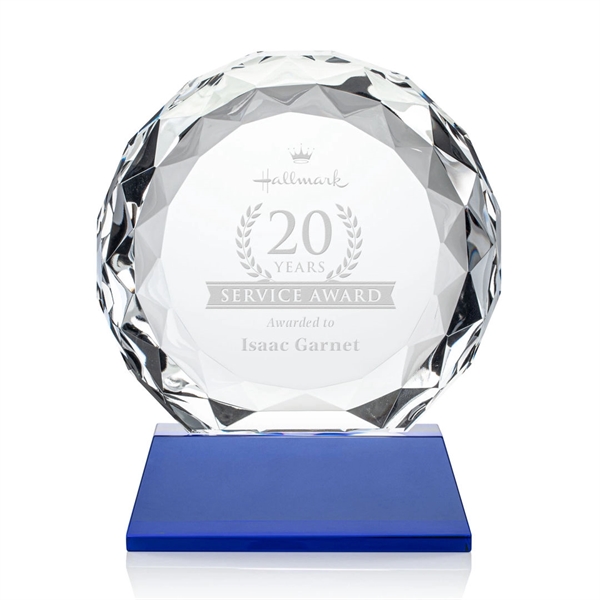The spectacular Optical Crystal Seville is a stunning diamond shaped award. Your inspirational success is framed by sparkling facets, creating a spectacle of light to highlight your well deserved recognition. Mounted on a tall optical sapphire base. Second Position Etch & Colorfill optional.