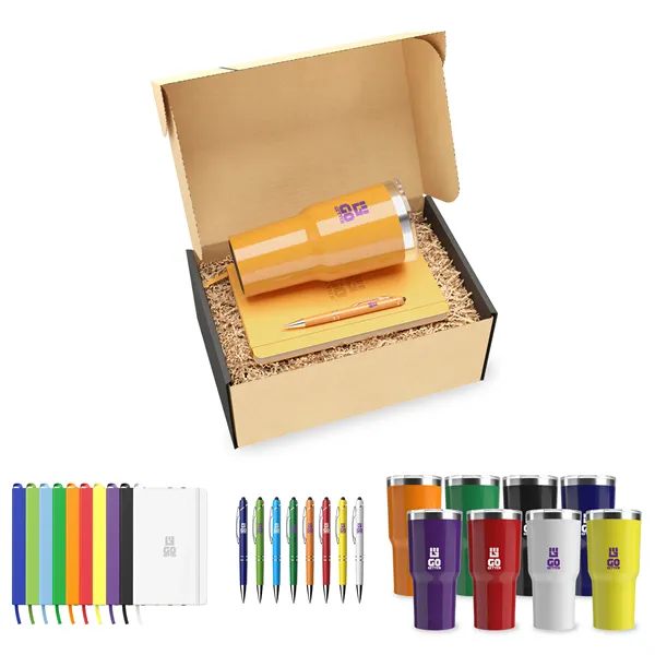 Mix and match colors to create your own custom kit!Kit includes DW418 Go Getter Stainless Steel Tumbler ST4143 Neoskin Hard Cover Journal I138 Glacio Ballpoint Pen/Stylus