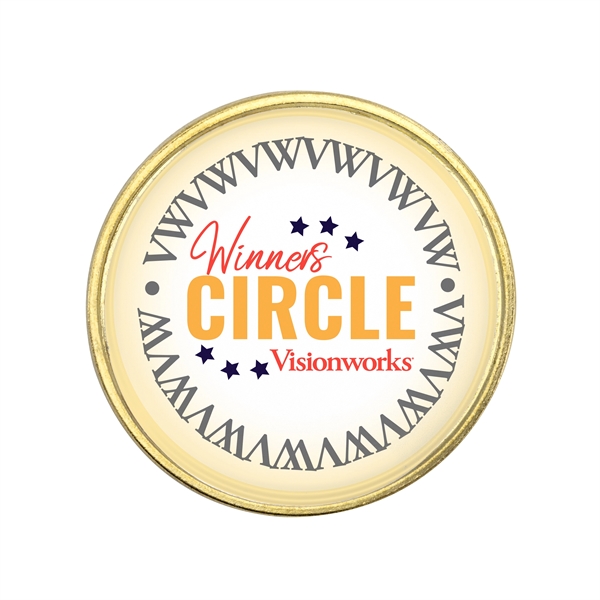 Create a cool keepsake that shows off your business or brand in a colorful and collectable way with these lapel pins with a magnetic closure. Made of metal, these pins have a full color laminate design and can be created in all sorts of stock shapes and sizes. Reproduce photos, logos and more in vibrant full color on the smooth surface. Pricing includes choice of gold or nickel metal finish with clutch closure attachment hardware. Four day USA work production standard on catalog quantities.