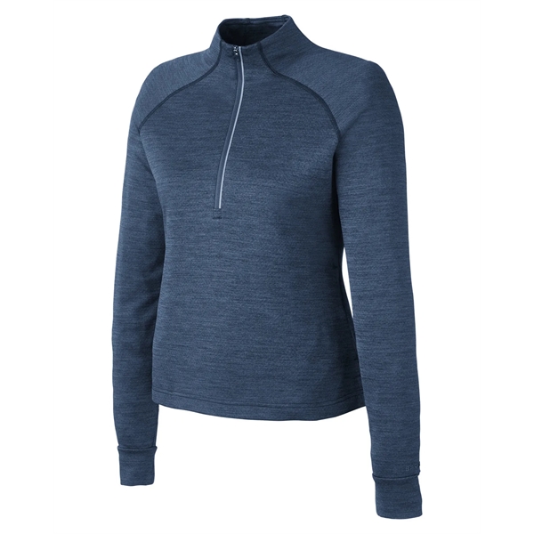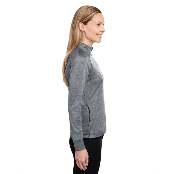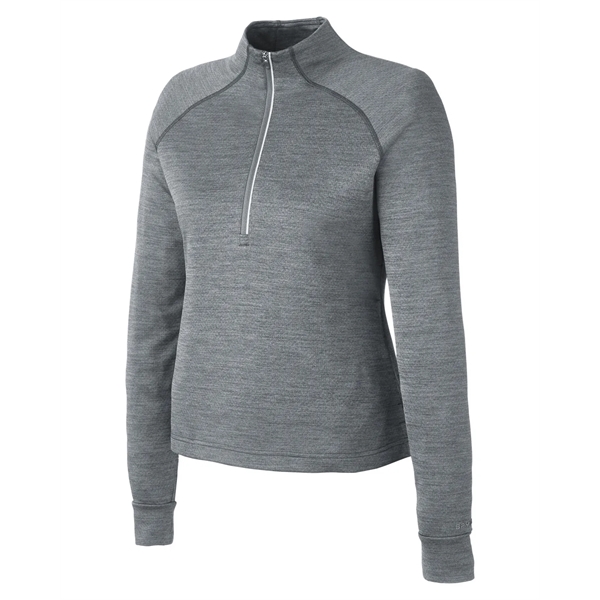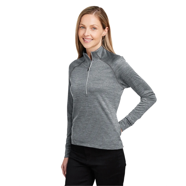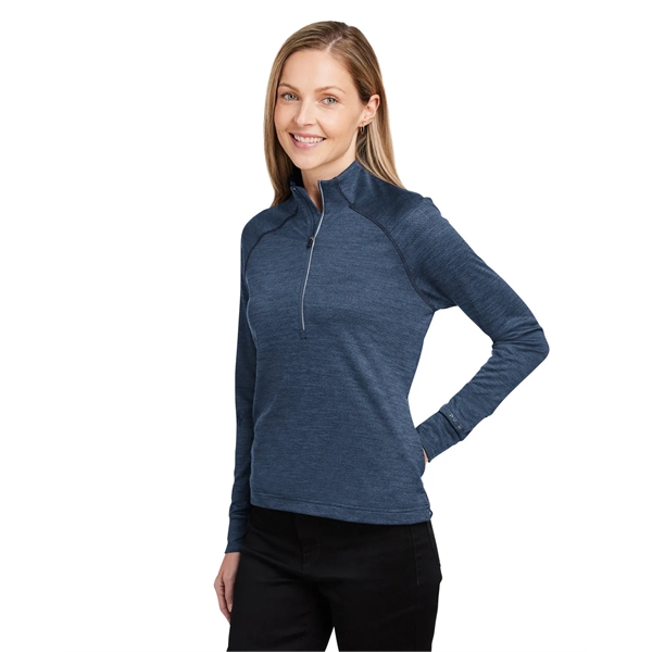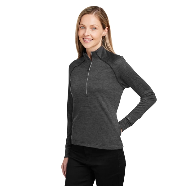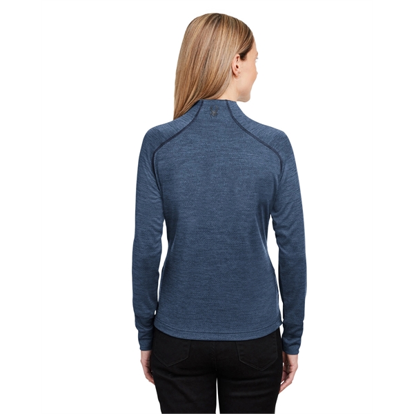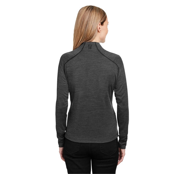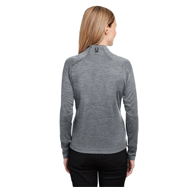 The Spyder Ladies' Mission Half-Zip is your go-to pullover for effortless style and versatile layering. Made of 90% polyester and 10% recycled polyester, this top features a sleek low-profile mock neck, a reverse coil locking zipper with reflective detail, stylized back seams with high definition 'Bug' logo, rubberized Spyder wordmark at the left cuff, hidden side seam hand pockets and side vents with woven 'Bug' label at wearers left hem. It's also recycled claim standard certified. Offered in a variety of sizes and colors. Customization is available.
