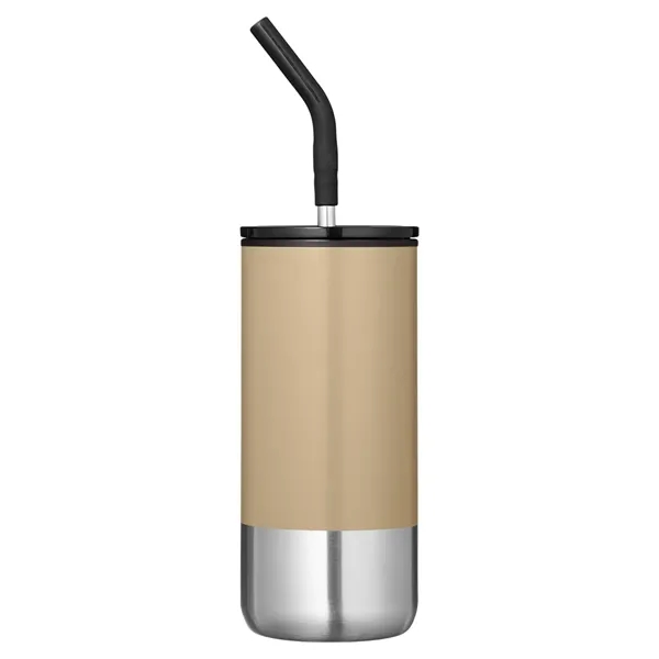 Stainless steel outer, PP inner. Designed for both style and practicality; drink through the push-on slide-lock lid, or use the provided stainless steel straw with silicone tip. Double-wall insulated.