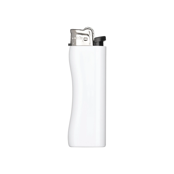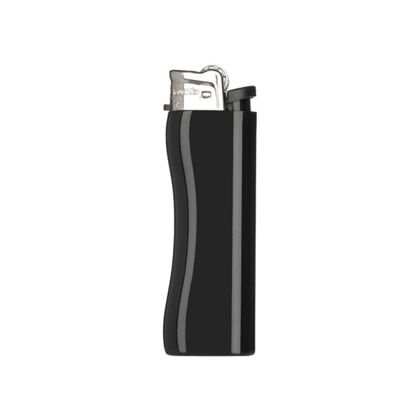 Manufactured from plastic to very high quality standards, this standard flame flint wheel lighter is the industry's best quality lighter. Rigorously tested and CPSC approved, the 1" x 3.25" refillable lighter features a thickened lighter wall, a stylish gloss finish, and an effective child resistant safety mechanism. With your custom logo printed on the front, this lighter makes a great branded product.