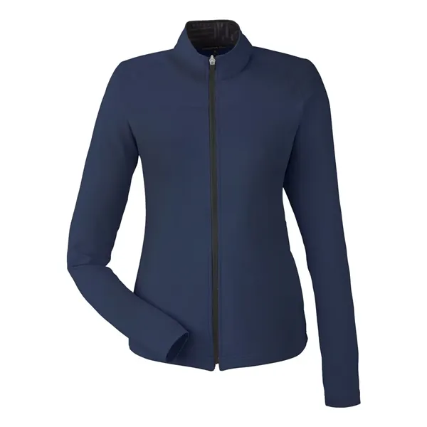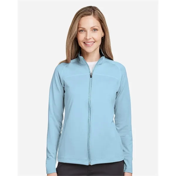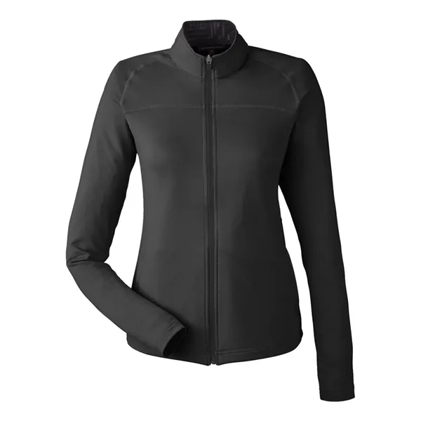 Swannies Women's Cora Full-Zip Jacket ul)7.8 oz./yd2., 88/12 polyester/spandex. Heathered. Embossed print inside collar stand. Full-zip. Lower front zippered pockets.