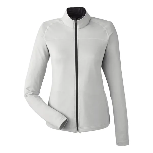 Swannies Women’s Cora Full-Zip Jacket ul)7.8 oz./yd2., 88/12 polyester/spandex. Heathered. Embossed print inside collar stand. Full-zip. Lower front zippered pockets.