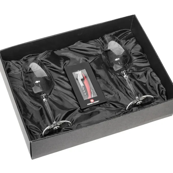 The RIEDEL Extreme Wine Glasses and Swiss Force® Impressive Wine Tool work together to provide the best wine-drinking experience. The RIEDEL Extreme Wine Glasses feature shape was designed specifically to complement the characteristics of your favorite vintage. The Swiss Force® Impressive Wine Tool functions include a foil cutter, corkscrew, bottle lever, and opener. Packaged in a satin-lined presentation gift box for an elegant gift set for any occasion.