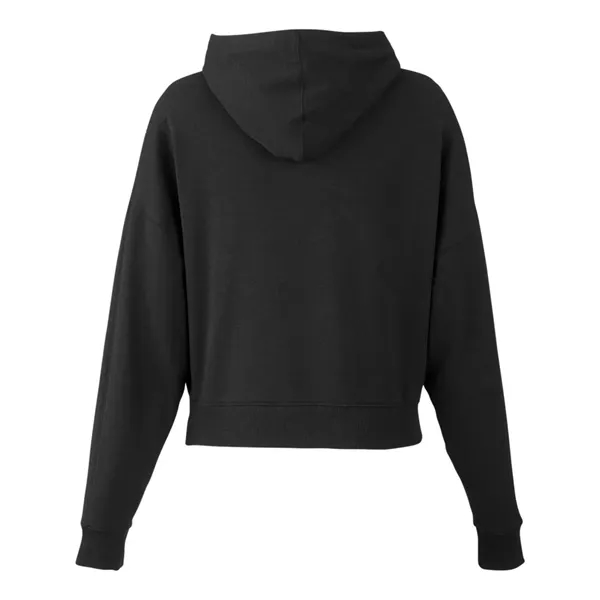 TASC Performance Inc Women's Studio Hooded Fleece ul)7.8 oz./yd2., 53/43/4 organic cotton/bamboo viscose/lycra® spandex. Made with organic cotton and renewable bio-degradable bamboo fibers. Moisture-management properties. UPF 50+ protection. Anti-odor technology. Brushed back fleece. Relaxed fit, tapered to bottom band. Temperature regulation. Flat draw cords at hood with metal tipping exit through metal grommets. Oversize armholes to create a dolman look. 1.5" panel at outer sleeve with single topstitch. 2x2 rib sleeve cuffs and bottom band. Soft twill inner label sewn at center back neck seam. Sewn in care and content label at lower left side seam. Woven drop tab logo folded over bottom band at left side. Fabric and garments are manufactured in a facility 100% powered by solar and win...