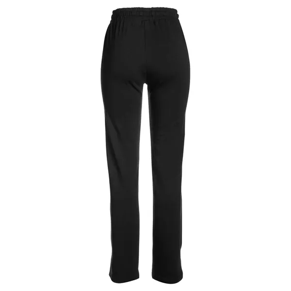 TASC Performance Inc Women's Studio Pants ul)7.7 oz./yd2., brushed back fleece. 53/43/4 organic cotton/bamboo viscose/ lycra® spandex. Made with organic cotton and renewable bio-degradable bamboo fibers. Moisture-management properties. UPF 50+ protection. Anti-odor technology. Semi-fitted with open bottom. Temperature regulation. Waistband with encased elastic. Flat draw cord with metal tipping exit to outer pant with metal grommets. Open side pockets with rib hem. 2" splits at lower leg outseam. Soft twill label at inner back waist band. Care and content label sewn into waist band at back left. Sewn in care and content label at lower left side seam. Drop logo mark embroidery at left bottom pocket opening. Fabric and garments are manufactured in a facility 100% powered by solar and wind...