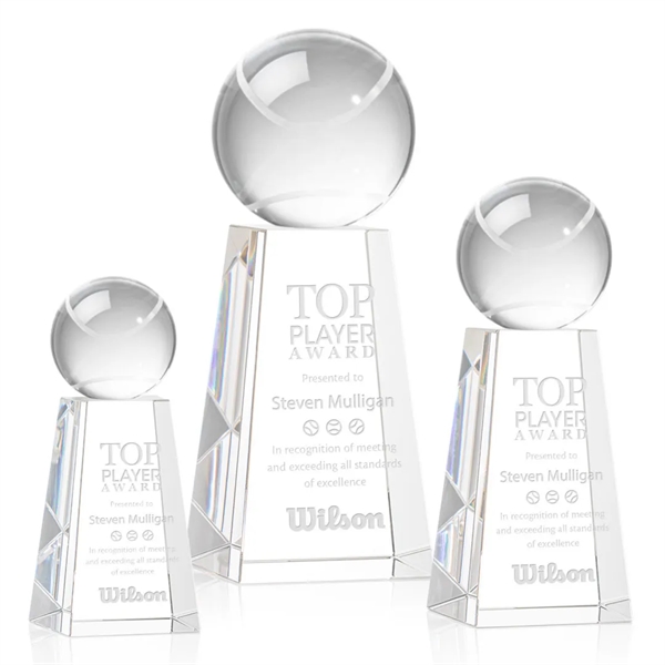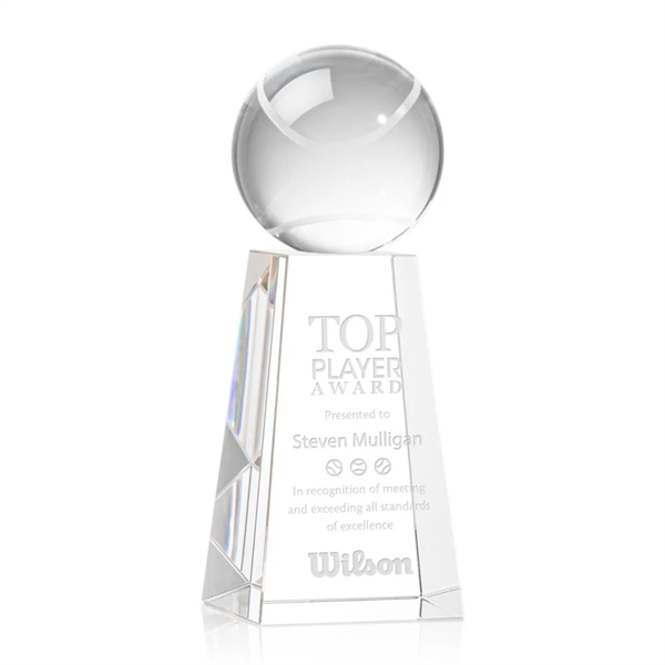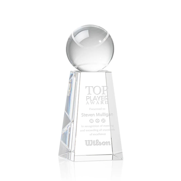 Our Tennis Ball Award is a striking tribute to the dedication and skill of tennis enthusiasts. At the heart of this masterpiece is a flawlessly rendered Optical Crystal Tennis Ball that refracts light in a captivating display. Mounted on a complimenting Optical base for personalization with a Logo or Name. An exceptional award, gift, or keepsake for tennis tournaments, competitions, or special occasions.