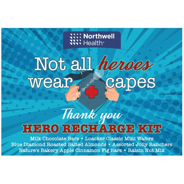 What better time than the present to show your appreciation. Say "Thanks for all you do" with this small gift box filled with an assortment of goodies. Each box contains 10 assorted Jolly Ranchers, 3 mini wafers, 3 chocolate bars, 3 roasted and salted almonds bags, 3 cinnamon fig bars, and 3 bags of raisin nut trail mix. Choose from 2 different stock label designs (healthcare/non-healthcare), imprinted with your company name or design your own. This is a perfect gift for employee appreciation, doctor's day or nurses week.