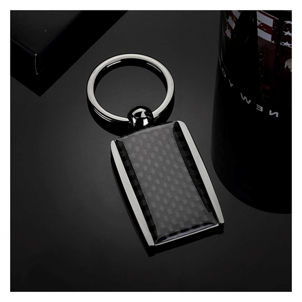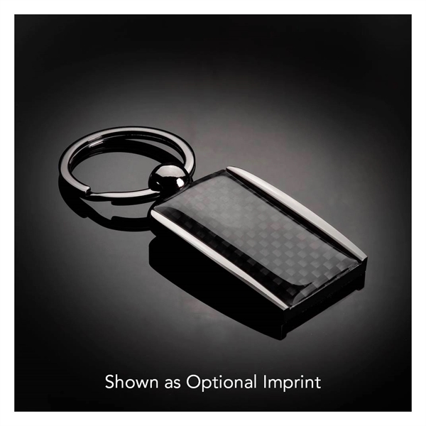 Corral your keys and keep them together with this handsome keychain. This 1 1/4" x 3 1/4" tag-style fob is created with durable carbon fiber material and gunmetal color accents. The wide split ring is ready to attach to your purse, backpack, belt loop or favorite keyring. Add your school, sports team, organizational or company logo, emblem or message to craft a branded promotion that makes a great gift or giveaway at grand openings, trade shows and other events. Includes a display box suitable for giving.