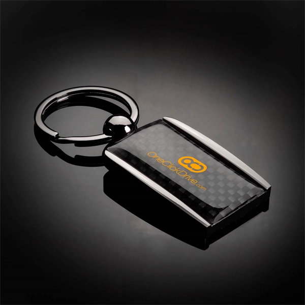 Corral your keys and keep them together with this handsome keychain. This 1 1/4″ x 3 1/4″ tag-style fob is created with durable carbon fiber material and gunmetal color accents. The wide split ring is ready to attach to your purse, backpack, belt loop or favorite keyring. Add your school, sports team, organizational or company logo, emblem or message to craft a branded promotion that makes a great gift or giveaway at grand openings, trade shows and other events. Includes a display box suitable for giving.