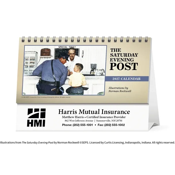 The Saturday Evening Post Illustrations by Norman Rockwell Desk. With desktop display calendars, the message is kept in front of customers every day of the year. This handsome display of American masterpieces is sure to be appreciated. The FSC® label means that the materials used for this product come from well-managed FSC®-certified forests and other controlled sources.
