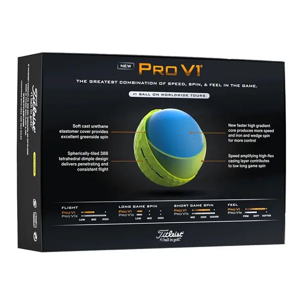 The Pro V1® is the #1 golf ball on worldwide tours! Designed for serious golfers seeking tour-level golf ball performance by provideing the greatest combination of speed, spin & feel. For more, see 62531 (factory direct in US, half dozen), 60714 (US In House). For Canadian orders see 80000 (Canada factory direct).