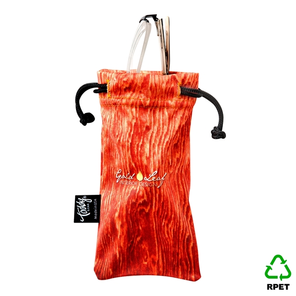 The RPET Smart Pouch Thin - Small is a microfiber pouch for storage and cleaning of delicate surfaces, featuring a double-sided drawstring, vibrant full-color imprint, and washable design.
