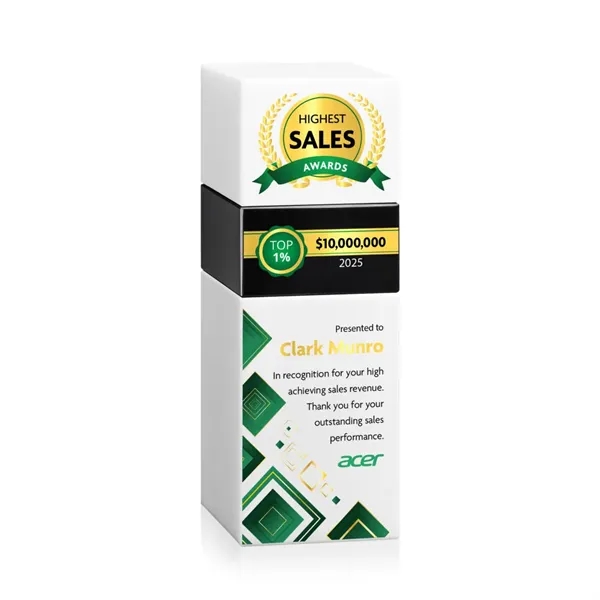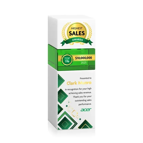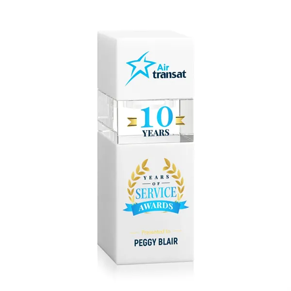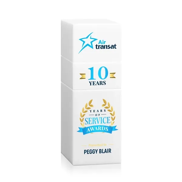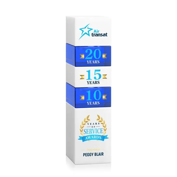 The Optical Crystal Tofino Stacker VividPrint™ Award features a unique stackable design that symbolizes growth, progress, and the potential for even greater heights. Perfect for years of service, sales achievements, or any landmark event! This award includes 3 pieces: the bottom block, top block, and 1 stacking block. Discover all the color variations and build your custom stack! Take your artwork to new heights with full-color VividPrint™! Additional blocks optional.