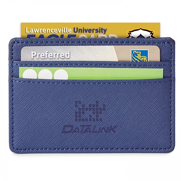 As a Spector Co. Original, this elegant genuine diamond-textured leather card holder proves there is safety in numbers! Inside the , your debit and credit cards are safely tucked away in the 5 pockets and your personal information protected by RFID technology, while outside your logo is proudly branded. NOTE Laser touch branding method available on blue and black items only.