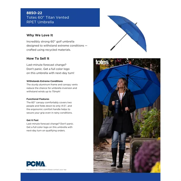 totes® 60″ Titan Vented RPET Umbrella