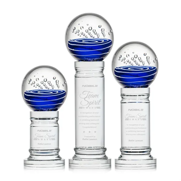 A Stunning Hand Blown work of Art. Complete with a complimenting base for personalization with a Logo or Name. Each piece is individually Hand-crafted.