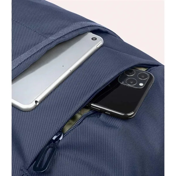 The TUCANO® - Italy ASTRA Recycled Anti-Gravity System Business Backpack is designed for laptops up to 15.6" and MacBooks Pro 16". Made from twill fabric produced from recycled plastic, it features cords with an all-over pattern, combining sustainability with style. The backpack includes a large interior compartment and perfectly organized storage pockets, ensuring optimal organization. The back section, equipped with an anti-shock system, provides a dedicated space for your laptop. The front has two roomy, easy-to-access pockets, while the back features a security pocket and a practical trolley strap. The AGS (Anti-Gravity System) reduces the weight on your shoulders, enhancing posture and comfort, making it an ideal choice for the modern professional.