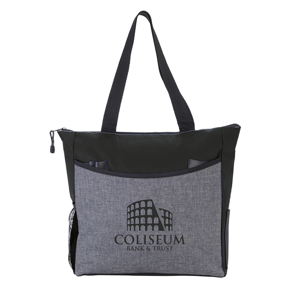 Stay organized on the go with this stylish tote. It's got you covered with a front slip pocket, pen & business card pockets, mesh water bottle pocket, and side cell phone pocket.