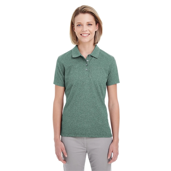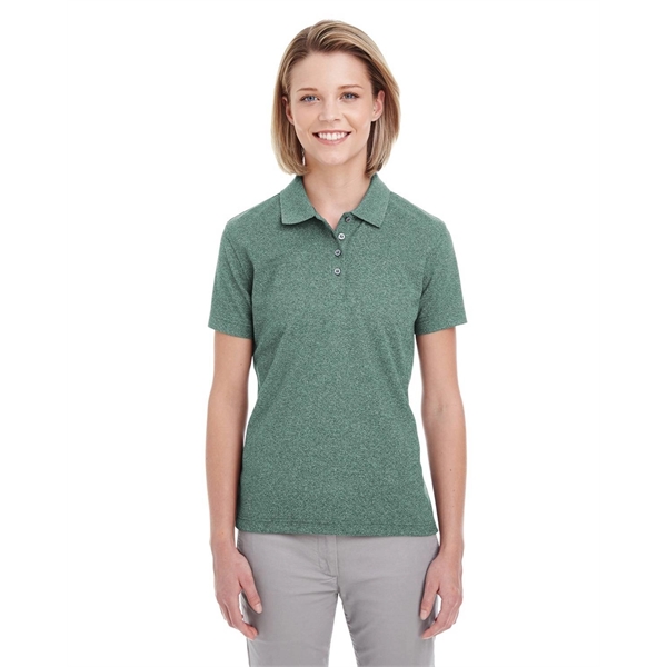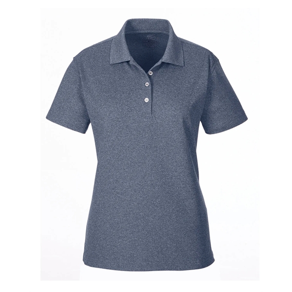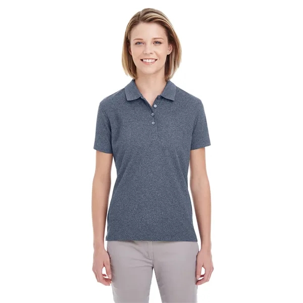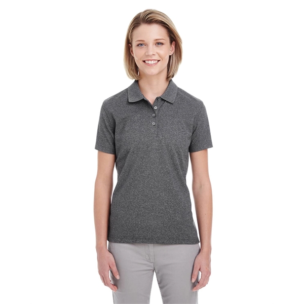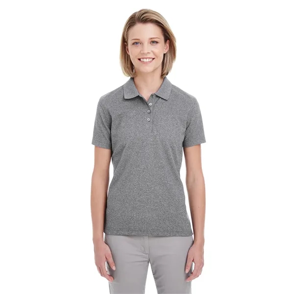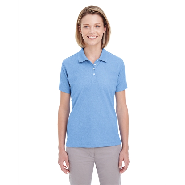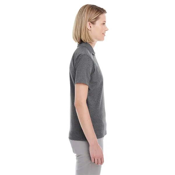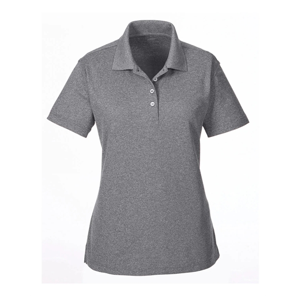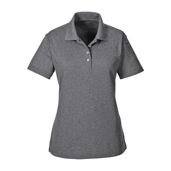 5.31 oz/yd2, 180gsm; 100% heathered polyester pique; Moisture-wicking and antimicrobial performance; UV 15-39 protection;Matching flat-knit collar; Side vents; Four-button narrow feminine placket;