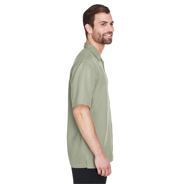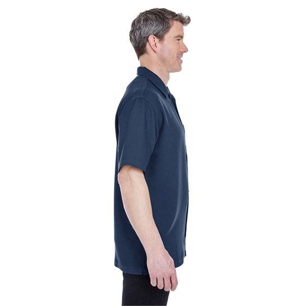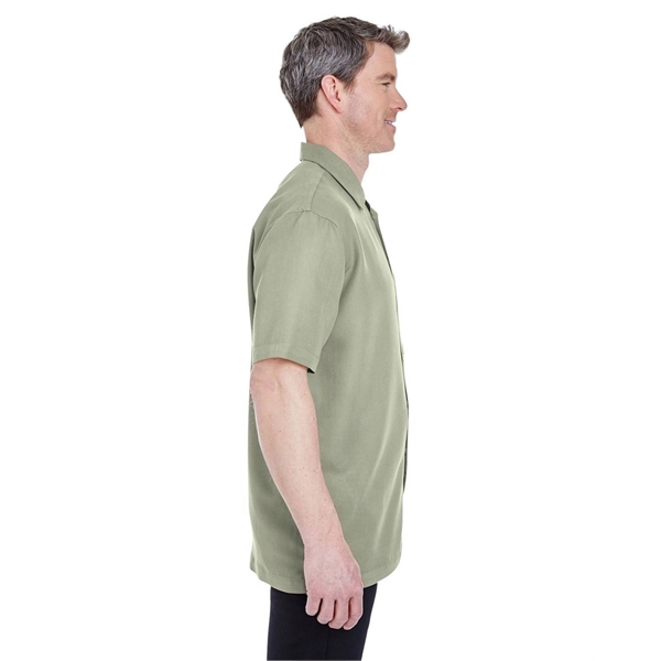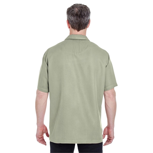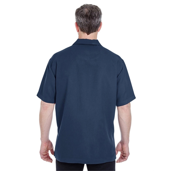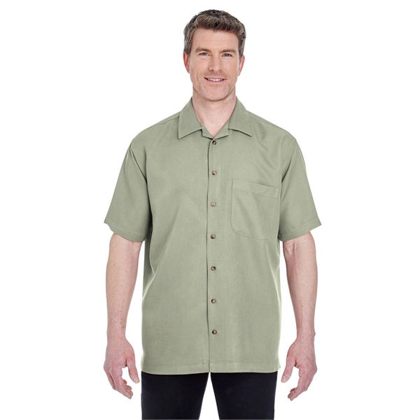 5.5 oz. 60% rayon, 40% polyester microfiber; Sand-washed;Comfort fit; Square bottom; Finished side vents;